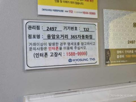 코너명: (목)응암오거리 365자동화점작업일: 2025-09-04청소형태: (목)입점회차: 1회차작업확인: 미확인전송: 대기사진수: 4시작시간: 1023마침시간: 1030 3번 읽음