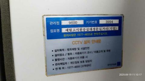 코너명: (기업)예림고시원숭실대정문길거리작업일: 2025-09-19청소형태: 간이청소회차: 1회차작업확인: 미확인전송: 대기사진수: 4시작시간: 1110마침시간: 1112 4번 읽음