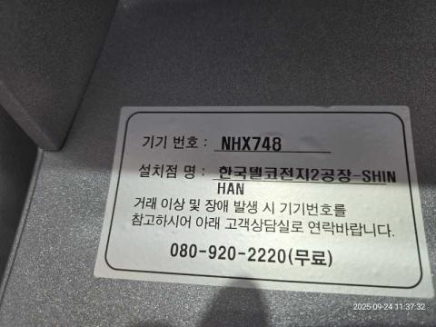 코너명: 한국델코전지2공장-SHINHAN작업일: 2025-09-24청소형태: 간이청소회차: 1회차작업확인: 미확인전송: 대기사진수: 3시작시간: 1137마침시간: 1137 4번 읽음