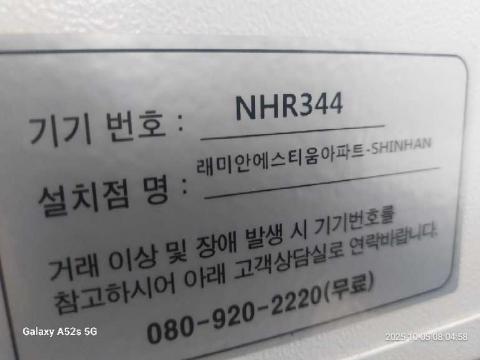 코너명: 래미안에스티움아파트-SHINHAN작업일: 2025-10-05청소형태: 간이청소회차: 1회차작업확인: 미확인전송: 대기사진수: 3시작시간: 0804마침시간: 0805 5번 읽음