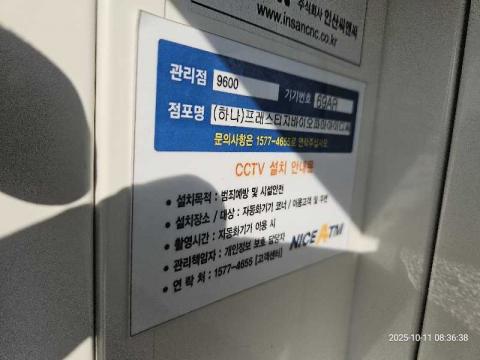 코너명: (하나)프레스티지바이오파마아이디씨작업일: 2025-10-11청소형태: 간이청소회차: 1회차작업확인: 미확인전송: 대기사진수: 9시작시간: 0836마침시간: 0837 6번 읽음
