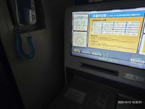 코너명: 대전 철도차량 정비단 복지동 1층 매점앞-WOORI작업일: 2025-10-12청소형태: 대청소회차: 1회차작업확인: 미확인전송: 대기사진수: 10시작시간: 1625마침시간: 1634