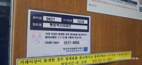 코너명: 햇빛벽산아파트작업일: 2025-10-12청소형태: 대청소회차: 1회차작업확인: 미확인전송: 완료전송메시지: {"resultCd":"1","resultMsg":"정상 처리 되었습니다."}사진수: 12마침시간: 0737