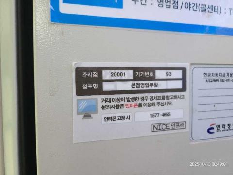 코너명: 본점영업부앞작업일: 2025-10-13청소형태: 대청소회차: 2회차작업확인: 미확인전송: 완료전송메시지: {"resultCd":"1","resultMsg":"정상 처리 되었습니다."}사진수: 16시작시간: 0849마침시간: 0856 1번 읽음