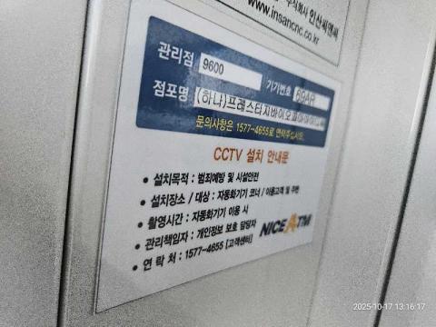 코너명: (하나)프레스티지바이오파마아이디씨작업일: 2025-10-17청소형태: 간이청소회차: 1회차작업확인: 미확인전송: 대기사진수: 9시작시간: 1316마침시간: 1316 7번 읽음