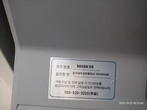 코너명: 을지대학교인애학사-SHINHAN작업일: 2025-10-25청소형태: 간이청소회차: 1회차작업확인: 미확인전송: 대기사진수: 4시작시간: 1020마침시간: 1027 4번 읽음