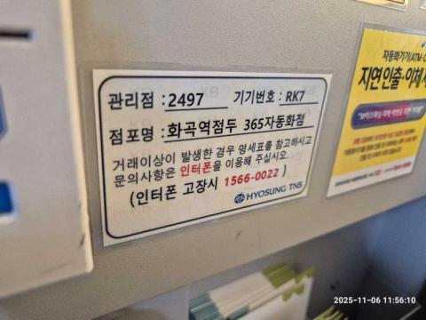 코너명: (목)화곡역점두 365자동화점작업일: 2025-11-06청소형태: (목)입점회차: 1회차작업확인: 미확인전송: 대기사진수: 4시작시간: 1156마침시간: 1156 3번 읽음