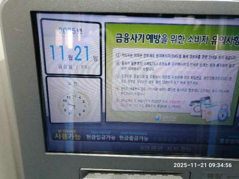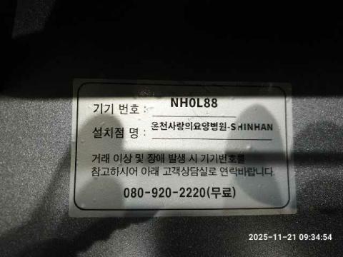 코너명: 온천사랑의요양병원-SHINHAN작업일: 2025-11-21청소형태: 간이청소회차: 2회차작업확인: 미확인전송: 대기사진수: 4시작시간: 0934마침시간: 0935 4번 읽음