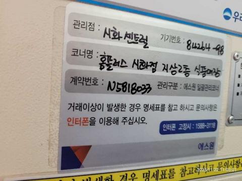코너명: 홈플러스 시화점 지상2층 식품매장작업일: 2025-11-22청소형태: 간이청소회차: 3회차작업확인: 미확인전송: 대기사진수: 4시작시간: 1103마침시간: 1110 4번 읽음