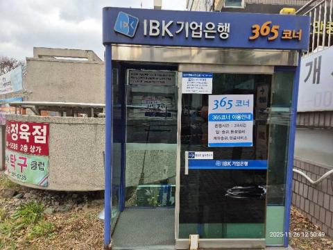 코너명: 한라4단지 1차상가 길거리365작업일: 2025-11-26청소형태: 간이청소회차: 3회차작업확인: 미확인전송: 대기사진수: 4시작시간: 1250마침시간: 1253 3번 읽음