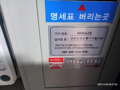 코너명: 선유도코오롱디지털타워 길거리365작업일: 2025-12-06청소형태: 간이청소회차: 1회차작업확인: 미확인전송: 대기사진수: 4시작시간: 0927마침시간: 0935 4번 읽음