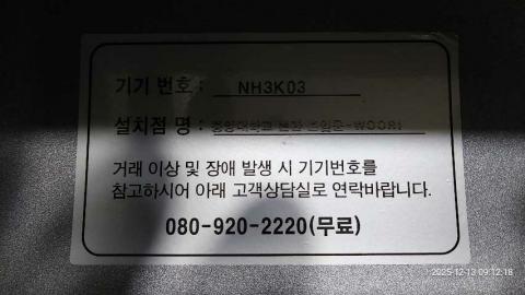 코너명: 중앙대학교 본관 출입문-WOORI작업일: 2025-12-13청소형태: 간이청소회차: 1회차작업확인: 미확인전송: 대기사진수: 4시작시간: 0912마침시간: 0912 2번 읽음