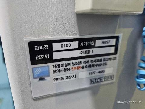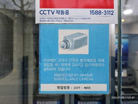 코너명: 수내동작업일: 2026-01-09청소형태: 대청소회차: 1회차작업확인: 미확인전송: 완료전송메시지: {"resultCd":"1","resultMsg":"정상 처리 되었습니다."}사진수: 17시작시간: 1651마침시간: 1706