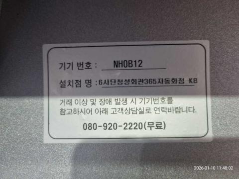 코너명: 6사단청성회관365자동화점-KB작업일: 2026-01-10청소형태: 대청소회차: 1회차작업확인: 미확인전송: 대기사진수: 14시작시간: 1148마침시간: 1151 1번 읽음