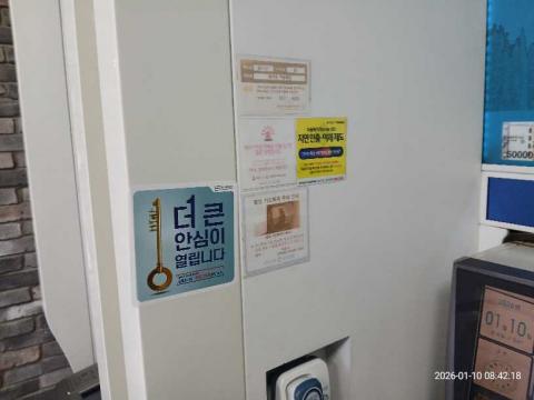코너명: 화서역 자동화점작업일: 2026-01-10청소형태: 대청소회차: 2회차작업확인: 미확인전송: 완료전송메시지: {"resultCd":"1","resultMsg":"정상 처리 되었습니다."}사진수: 15시작시간: 0837마침시간: 0846 1번 읽음