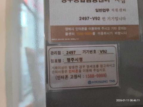 코너명: 청주시청작업일: 2026-01-11청소형태: 대청소회차: 1회차작업확인: 미확인전송: 완료전송메시지: SUCCESS_COUNT=(12), ERROR_COUNT=(0), RESULT_CODE=(0), RESULT_MESSAGE=(업로드 성공)사진수: 12시작시간: 0845마침시간: 0850 3번 읽음