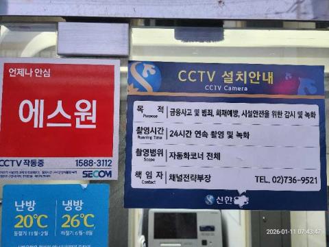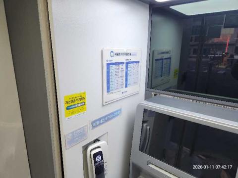 코너명: (주)예스코작업일: 2026-01-11청소형태: 대청소회차: 1회차작업확인: 미확인전송: 완료전송메시지: {"resultCd":"1","resultMsg":"정상 처리 되었습니다."}사진수: 13시작시간: 0738마침시간: 0745 2번 읽음
