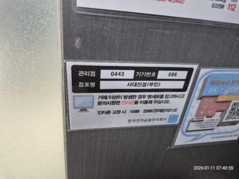 코너명: 서대전점(무인)작업일: 2026-01-11청소형태: 대청소회차: 1회차작업확인: 미확인전송: 완료전송메시지: {"resultCd":"1","resultMsg":"정상 처리 되었습니다."}사진수: 15시작시간: 0740마침시간: 0757 1번 읽음