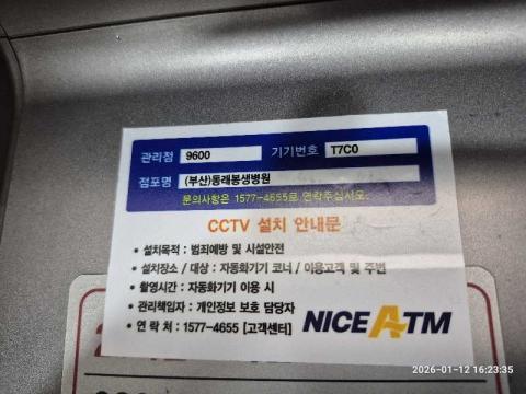 코너명: (부산)동래봉생병원작업일: 2026-01-12청소형태: 대청소회차: 1회차작업확인: 미확인전송: 완료전송메시지: {"resultCd":"1","resultMsg":"정상 처리 되었습니다."}사진수: 10시작시간: 1619마침시간: 1624