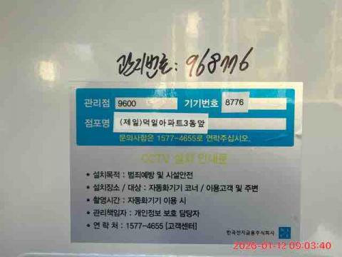 코너명: (제일)덕일아파트3동앞작업일: 2026-01-12청소형태: 대청소회차: 2회차작업확인: 미확인전송: 완료전송메시지: {"resultCd":"1","resultMsg":"정상 처리 되었습니다."}사진수: 14시작시간: 0901마침시간: 0911