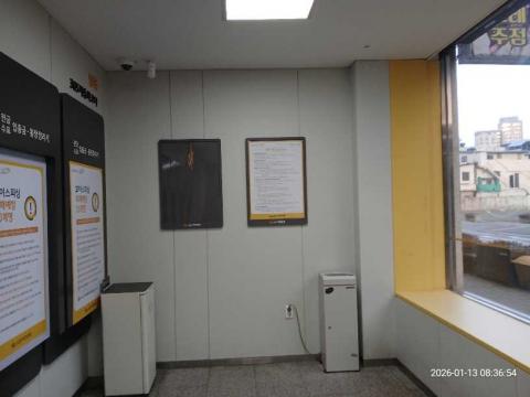 코너명: 정읍 365자동화점작업일: 2026-01-13청소형태: 대청소회차: 1회차작업확인: 미확인전송: 완료전송메시지: {"resultCd":"1","resultMsg":"정상 처리 되었습니다."}사진수: 18시작시간: 0836마침시간: 0916 1번 읽음