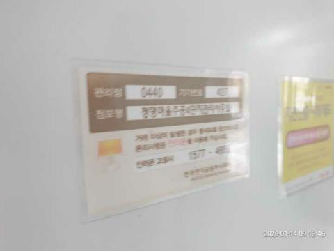 코너명: 청명마을주공4단지관리사무소작업일: 2026-01-14청소형태: 대청소회차: 1회차작업확인: 미확인전송: 완료전송메시지: {"resultCd":"1","resultMsg":"정상 처리 되었습니다."}사진수: 16시작시간: 0913마침시간: 0915