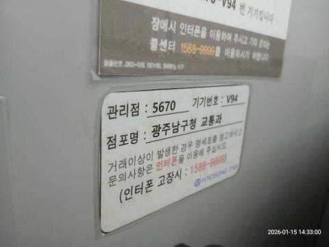 코너명: 광주남구청 교통과작업일: 2026-01-15청소형태: 대청소회차: 1회차작업확인: 미확인전송: 완료전송메시지: SUCCESS_COUNT=(12), ERROR_COUNT=(0), RESULT_CODE=(0), RESULT_MESSAGE=(업로드 성공)사진수: 12시작시간: 1433마침시간: 1433 1번 읽음