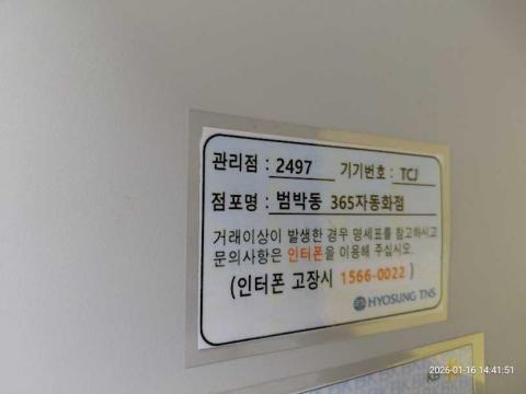코너명: 범박동 365자동화점작업일: 2026-01-16청소형태: 대청소회차: 1회차작업확인: 미확인전송: 완료전송메시지: SUCCESS_COUNT=(16), ERROR_COUNT=(0), RESULT_CODE=(0), RESULT_MESSAGE=(업로드 성공)사진수: 16시작시간: 1441마침시간: 1501