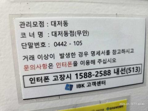 코너명: 대저동점(무인)작업일: 2026-01-16청소형태: 대청소회차: 1회차작업확인: 미확인전송: 완료전송메시지: SUCCESS_COUNT=(18), ERROR_COUNT=(0), RESULT_CODE=(0), RESULT_MESSAGE=(업로드 성공)사진수: 18시작시간: 1140마침시간: 1157 1번 읽음