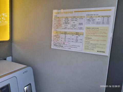 코너명: 이태원 365자동화점작업일: 2026-01-16청소형태: 대청소회차: 1회차작업확인: 미확인전송: 완료전송메시지: SUCCESS_COUNT=(17), ERROR_COUNT=(0), RESULT_CODE=(0), RESULT_MESSAGE=(업로드 성공)사진수: 17시작시간: 1333마침시간: 1345