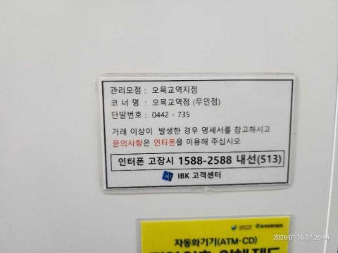 코너명: 오목교역점(무인)작업일: 2026-01-16청소형태: 대청소회차: 2회차작업확인: 미확인전송: 완료전송메시지: SUCCESS_COUNT=(16), ERROR_COUNT=(0), RESULT_CODE=(0), RESULT_MESSAGE=(업로드 성공)사진수: 16시작시간: 0719마침시간: 0734