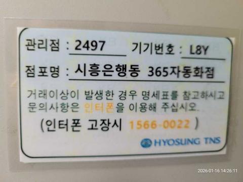 코너명: 시흥은행동 365자동화점작업일: 2026-01-16청소형태: 대청소회차: 2회차작업확인: 미확인전송: 완료전송메시지: SUCCESS_COUNT=(19), ERROR_COUNT=(0), RESULT_CODE=(0), RESULT_MESSAGE=(업로드 성공)사진수: 19시작시간: 1426마침시간: 1443 2번 읽음