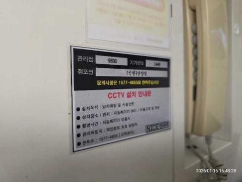 코너명: (신한)단양점작업일: 2026-01-16청소형태: 대청소회차: 2회차작업확인: 미확인전송: 완료전송메시지: {"resultCd":"1","resultMsg":"정상 처리 되었습니다."}사진수: 8시작시간: 1648마침시간: 1649