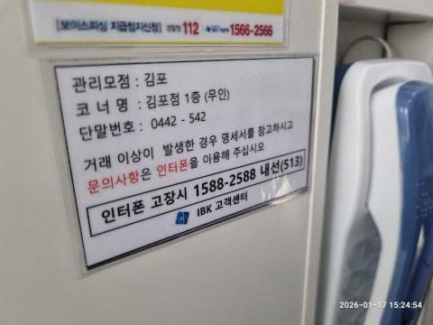 코너명: 김포점 1층(무인)작업일: 2026-01-17청소형태: 대청소회차: 1회차작업확인: 미확인전송: 완료전송메시지: SUCCESS_COUNT=(18), ERROR_COUNT=(0), RESULT_CODE=(0), RESULT_MESSAGE=(업로드 성공)사진수: 18시작시간: 1524마침시간: 1531