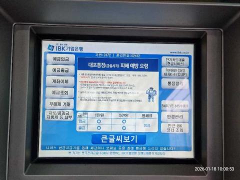 코너명: (기업)대흥에너지길거리작업일: 2026-01-18청소형태: 대청소회차: 2회차작업확인: 미확인전송: 완료전송메시지: {"resultCd":"1","resultMsg":"정상 처리 되었습니다."}사진수: 16시작시간: 0950마침시간: 1004