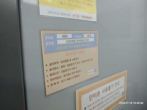 코너명: (국민)초원그린타운상가1층작업일: 2026-01-18청소형태: 대청소회차: 3회차작업확인: 미확인전송: 완료전송메시지: {"resultCd":"1","resultMsg":"정상 처리 되었습니다."}사진수: 9시작시간: 1047마침시간: 1052