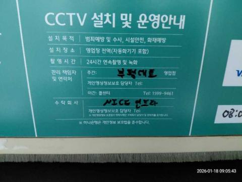 코너명: 한화아파트작업일: 2026-01-18청소형태: 대청소회차: 1회차작업확인: 미확인전송: 완료전송메시지: {"resultCd":"1","resultMsg":"정상 처리 되었습니다."}사진수: 15시작시간: 0905마침시간: 0912 3번 읽음