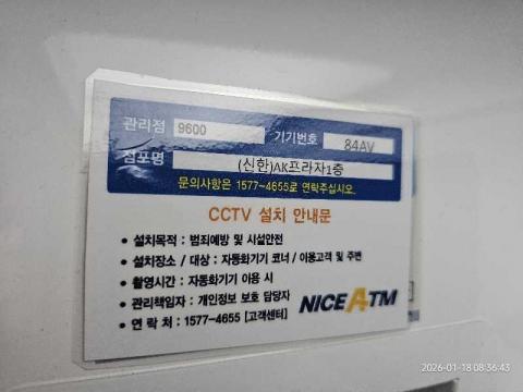 코너명: (신한)AK프라자1층작업일: 2026-01-18청소형태: 대청소회차: 1회차작업확인: 미확인전송: 완료전송메시지: {"resultCd":"1","resultMsg":"정상 처리 되었습니다."}사진수: 9시작시간: 0836마침시간: 0841