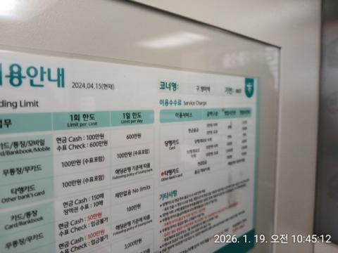 코너명: 구.방이역작업일: 2026-01-19청소형태: 대청소회차: 2회차작업확인: 미확인전송: 완료전송메시지: {"resultCd":"1","resultMsg":"정상 처리 되었습니다."}사진수: 20마침시간: 1109 3번 읽음