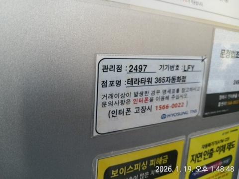 코너명: 테라타워 365자동화점작업일: 2026-01-19청소형태: 대청소회차: 2회차작업확인: 미확인전송: 완료전송메시지: SUCCESS_COUNT=(18), ERROR_COUNT=(0), RESULT_CODE=(0), RESULT_MESSAGE=(업로드 성공)사진수: 18마침시간: 1402 4번 읽음