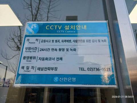 코너명: 안산역작업일: 2026-01-21청소형태: 대청소회차: 1회차작업확인: 미확인전송: 완료전송메시지: {"resultCd":"1","resultMsg":"정상 처리 되었습니다."}사진수: 18시작시간: 0853마침시간: 0856 2번 읽음