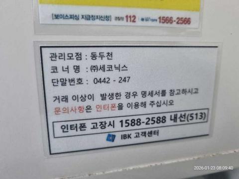 코너명: ㈜세코닉스작업일: 2026-01-23청소형태: 대청소회차: 1회차작업확인: 미확인전송: 완료전송메시지: SUCCESS_COUNT=(15), ERROR_COUNT=(0), RESULT_CODE=(0), RESULT_MESSAGE=(업로드 성공)사진수: 15시작시간: 0809마침시간: 0824