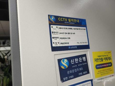 코너명: 광화문점두365작업일: 2026-01-26청소형태: 대청소회차: 1회차작업확인: 미확인전송: 완료전송메시지: {"resultCd":"1","resultMsg":"정상 처리 되었습니다."}사진수: 11시작시간: 0653마침시간: 0655