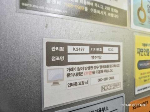 코너명: 영주역점작업일: 2026-01-26청소형태: 대청소회차: 1회차작업확인: 미확인전송: 완료전송메시지: {"resultCd":"1","resultMsg":"정상 처리 되었습니다."}사진수: 13