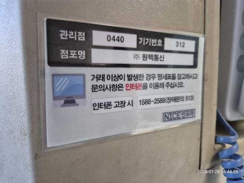코너명: (주)윈텍통신작업일: 2026-01-28청소형태: 대청소회차: 1회차작업확인: 미확인전송: 완료전송메시지: {"resultCd":"1","resultMsg":"정상 처리 되었습니다."}사진수: 17시작시간: 1643마침시간: 1644