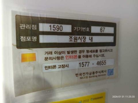 코너명: 조원시장 내작업일: 2026-01-31청소형태: 대청소회차: 1회차작업확인: 미확인전송: 완료전송메시지: {"resultCd":"1","resultMsg":"정상 처리 되었습니다."}사진수: 16시작시간: 1124마침시간: 1131 2번 읽음