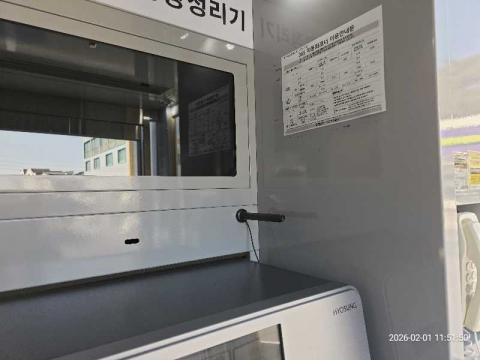 코너명: (국민)세명대후문병원365자동화점작업일: 2026-02-01청소형태: 대청소회차: 1회차작업확인: 미확인전송: 완료전송메시지: {"resultCd":"1","resultMsg":"정상 처리 되었습니다."}사진수: 12시작시간: 1146마침시간: 1153 2번 읽음