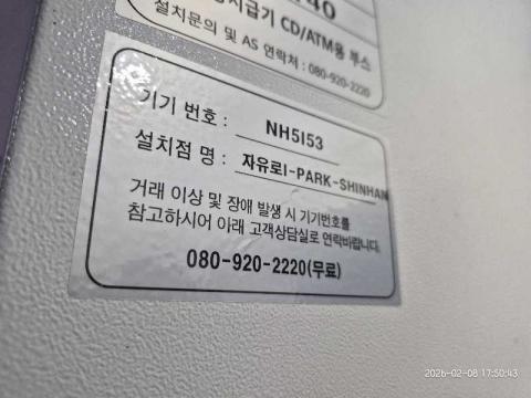 코너명: 자유로I-PARK-SHINHAN작업일: 2026-02-08청소형태: 간이청소회차: 1회차작업확인: 미확인전송: 대기사진수: 4시작시간: 1750마침시간: 1752 6번 읽음