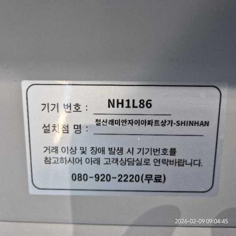 코너명: 철산래미안자이아파트상가-SHINHAN작업일: 2026-02-09청소형태: 간이청소회차: 1회차작업확인: 미확인전송: 대기사진수: 5시작시간: 0904마침시간: 0907 3번 읽음