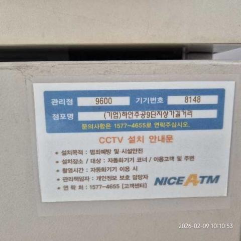 코너명: (기업)하안주공9단지상가길거리작업일: 2026-02-09청소형태: 간이청소회차: 1회차작업확인: 미확인전송: 대기사진수: 13시작시간: 1010마침시간: 1016 9번 읽음